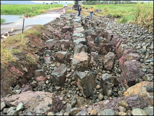 The rock-ramp fishway at the site was showing signs of significantly reduced functionality and was reaching the end of its anticipated design life. Recent advancements in fish passage construction developed through similar projects throughout the region were implemented in the repair of the fishway. Specifically, repairs to the existing fishway incorporated replacing some of the existing ridge and wall rock with larger rock, incorporating deeper resting pools and re-concreting the structure with fibre reinforced concrete for greater longevity, particularly with prolonged exposure to tropical conditions.